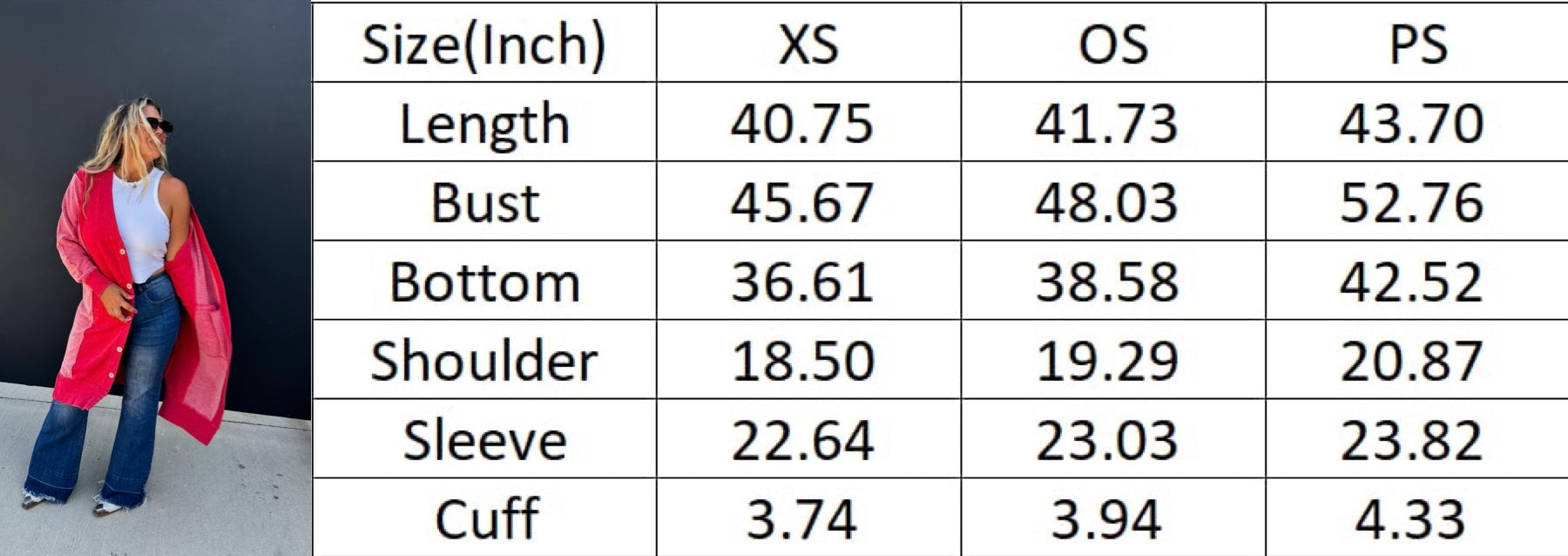 Made with luxurious DETAILING, this long cardigan features functional buttons, reverse fabric details on the sides, and pockets. Perfect for those chilly days, the luxury cardi adds style and practicality to your wardrobe.