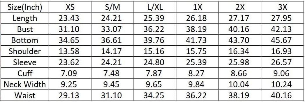 Sizing: